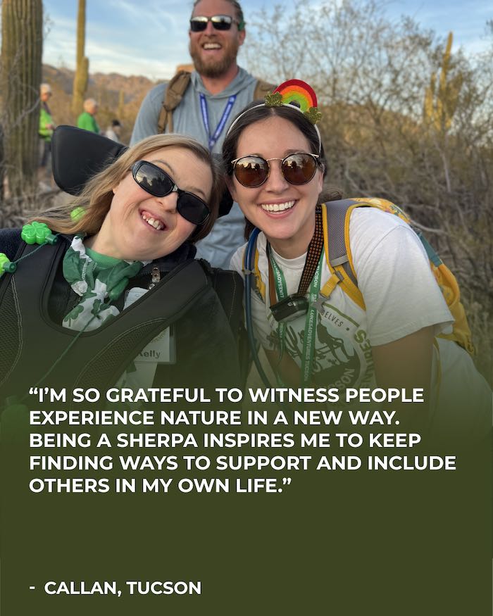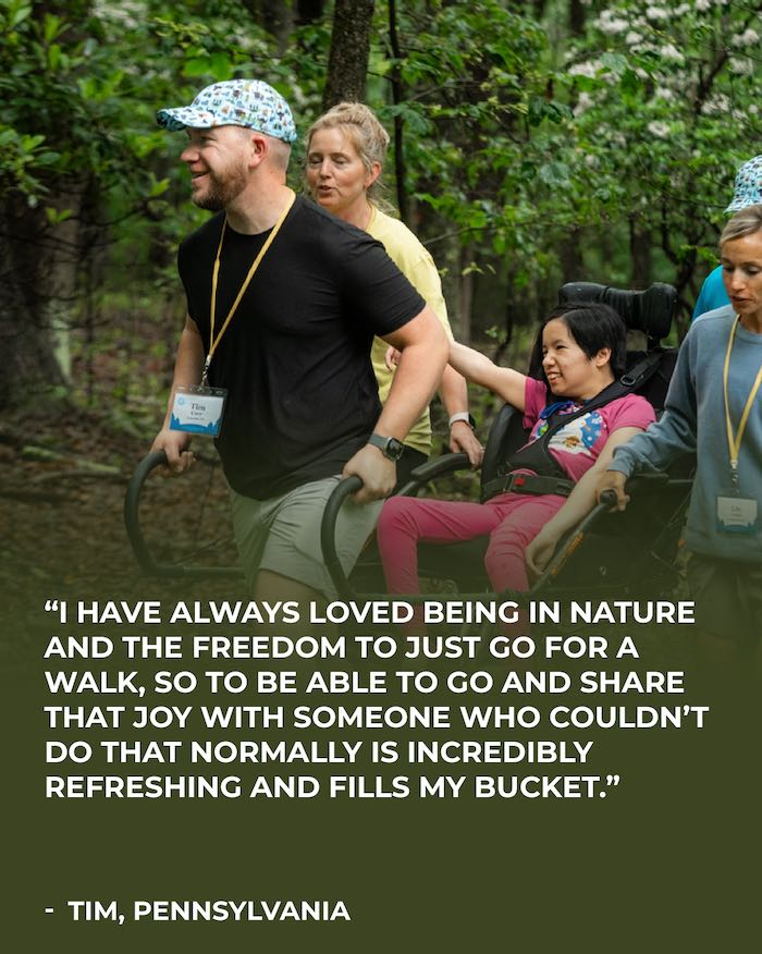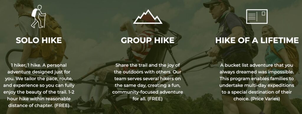 There are 3 ways you can go hiking with those who can’t hike. The Solo Hike, Group Hike and Hike Of A Lifetime each have different levels of time, involvement, challenges, experiences and more.
