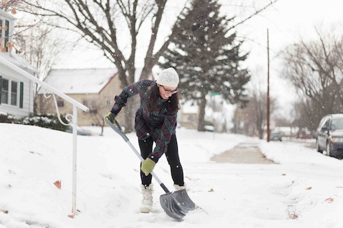 woman shoveling snow